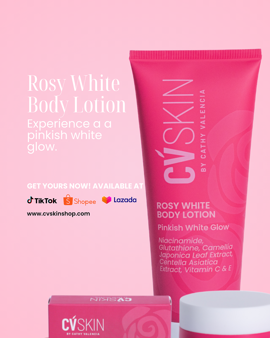 CV SKIN ROSY WHITE BODY LOTION is a hydrating and skin-brightening lotion formulated to promote a more even and radiant skin tone. Enriched with active ingredients like Niacinamide, Ascorbic Acid, and Licorice Root Extract, this lotion provides multiple benefits for your skin.